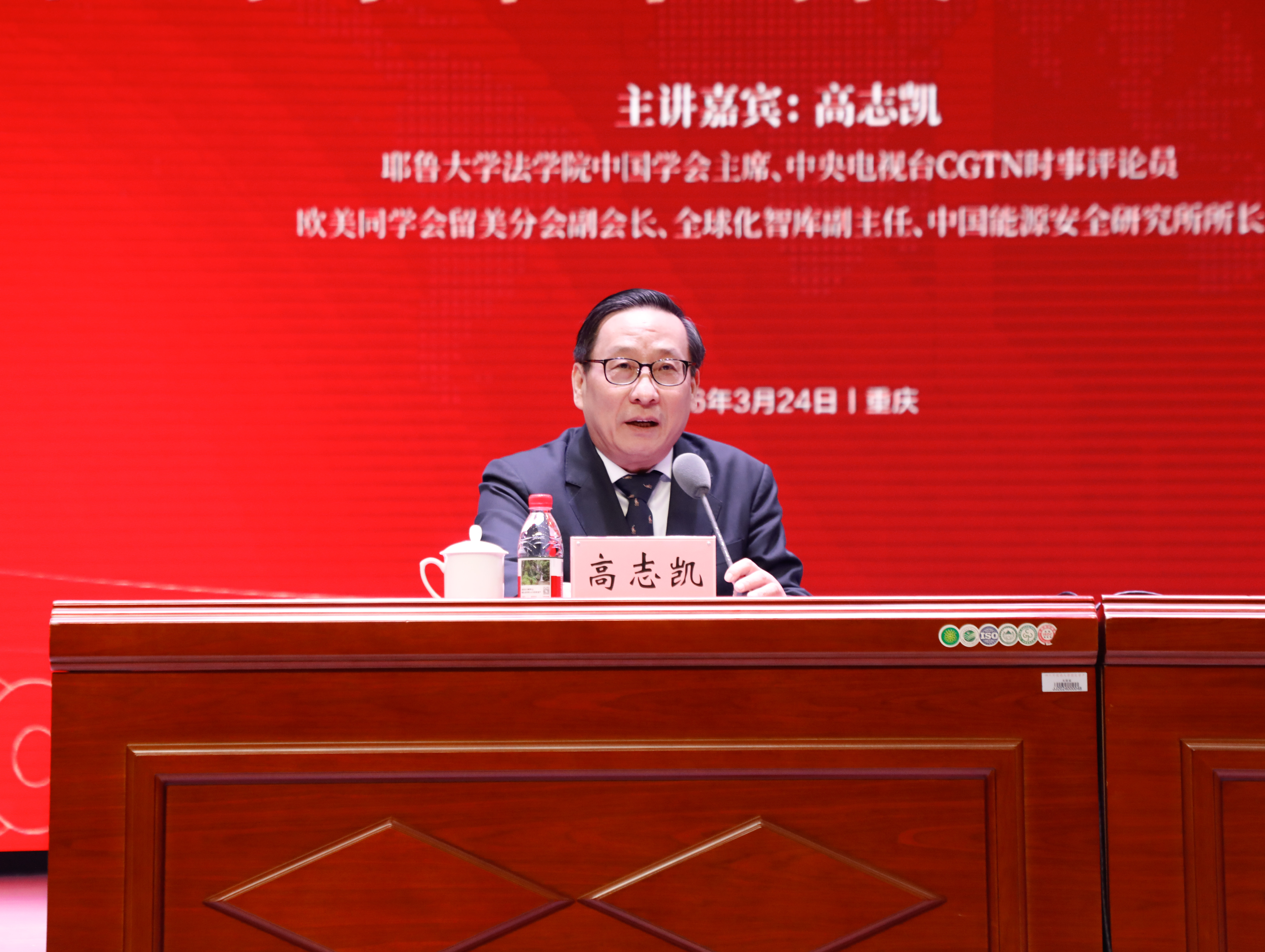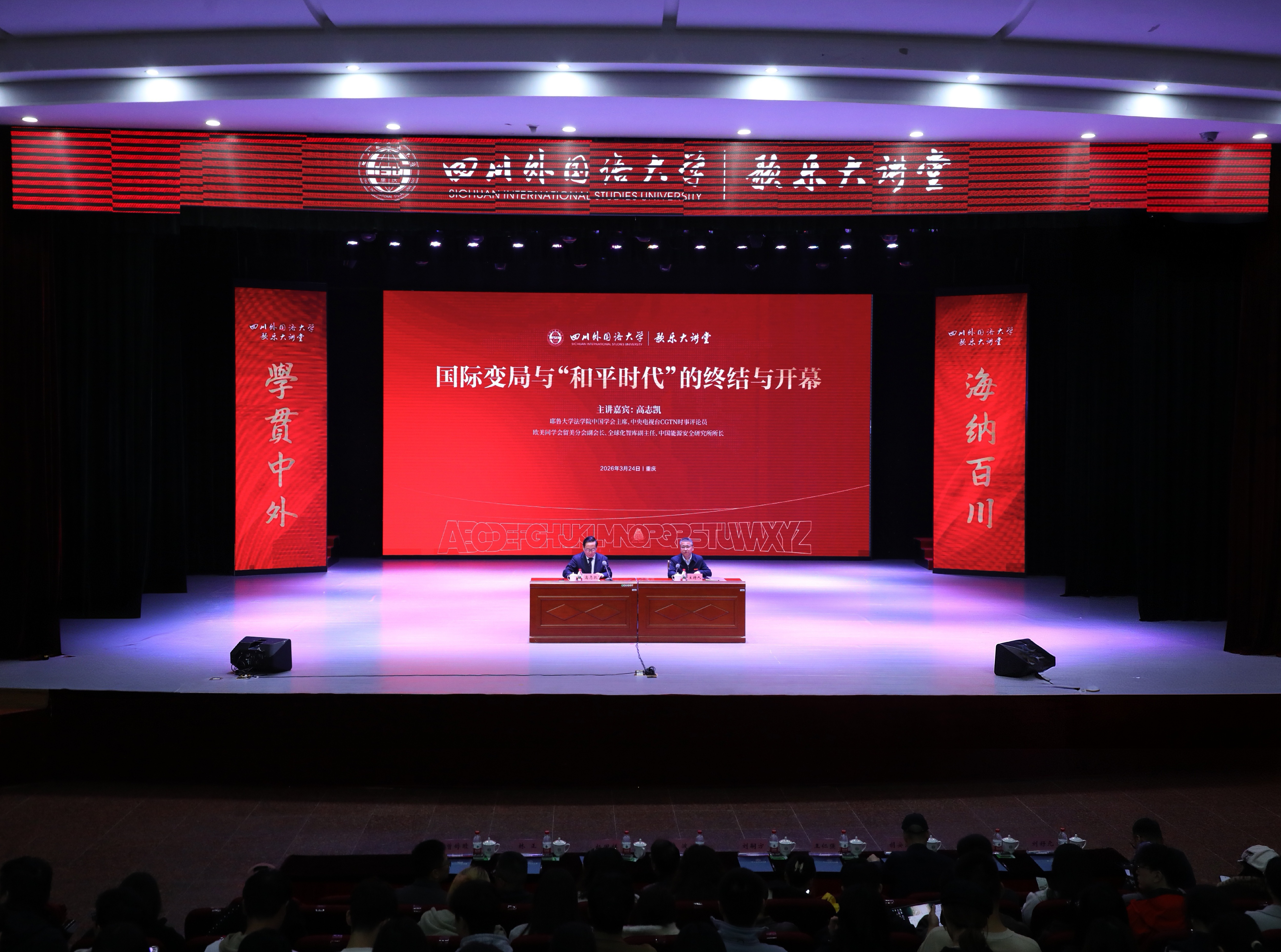 3月24日上午,学校“歌乐大讲堂”第三期在歌乐大礼堂开讲,邀请全球化智库副主任、著名国际问题专家高志凯作《国际变局与“和平时代”的终结与开幕》的专题报告,党委书记刘嗣方主持讲座。副校长卢波、王仁强,纪委书记、市监委驻校监察专员杨国祥,副校长胡安江参加讲座。