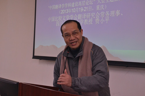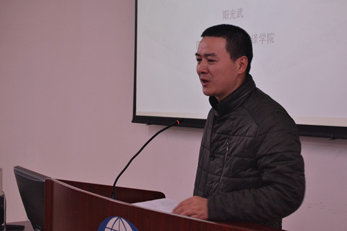 报告会最后,学校副校长李小川教授做了总结讲话。他用“水平高、精彩多、任务重”九个字对报告会予以了总结。他说,从整体而言,今天四位教师准备充分、研究视角新颖,四位专家讲评有针对性,既有宏观的指导,又有微观的建议,可谓整体“水平高”。其次,报告中老师所讲的内容及呈现的方式“精彩多”。他指出,我们学校有的老师,其学术水平与讲课效果“绝不亚于央视的《百家讲坛》”,他希望老师们教学与科研并重,教学科研相互促进,争取有机会早日登上高水平平台。他同时指出,我们国家的翻译事业大有可为,在世界各国文化的相互交往中,翻译和从事翻译研究的人肩负着“向世界讲述中国故事”的重任,肩负着急“消灭文化交流逆差”的重任,可谓“任务重”。他同时殷切寄语翻译学院全体师生,希望翻译学院能够在新的一年中扬帆破浪,谱写新的华章,创造新的辉煌。