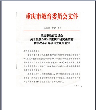 近日,重庆市教委向市内各研究生培养单位下发了《关于批准2013年重庆