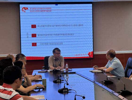 卢波紧紧围绕习近平新时代中国特色社会主义思想,从为什么学?——深刻认识开展学习贯彻习近平新时代中国特色社会主义思想的重大意义;学什么?——准确把握学习贯彻习近平新时代中国特色社会主义思想主题教育的目标要求;怎么学?——着力聚焦学习贯彻习近平新时代中国特色社会主义思想主题教育的重点举措;怎么做?——奋力推动学习贯彻习近平新时代中国特色社会主义思想在川外形成新的生动实践四个内容展开,并以调研报告的形式带领全体党员回顾了川外教育数字化转型背景下智慧教学环境建设情况和智慧图书馆建设情况。他在肯定支部全体党员为国为校建设作出贡献的同时,要求党员干部要持续学思想 强党性 重实践 建新功,坚决扛起做好新时代党的工作的职责使命,带头做到“两个维护”,处理好“五个关系”,不忘初心、牢记使命,走在前、当先锋、作表率,起到先锋模范作用。他强调,理想信念就是共产党人精神上的钙,党员干部要坚定信念补足精神之钙,坚决做到讲政治、有信念;要坚定信念讲理想、立足岗位讲奉献、勇于担当敢担当、创新发展求突破,在新时代新征程上展现新气象新作为,推动学校和部门高质量发展。