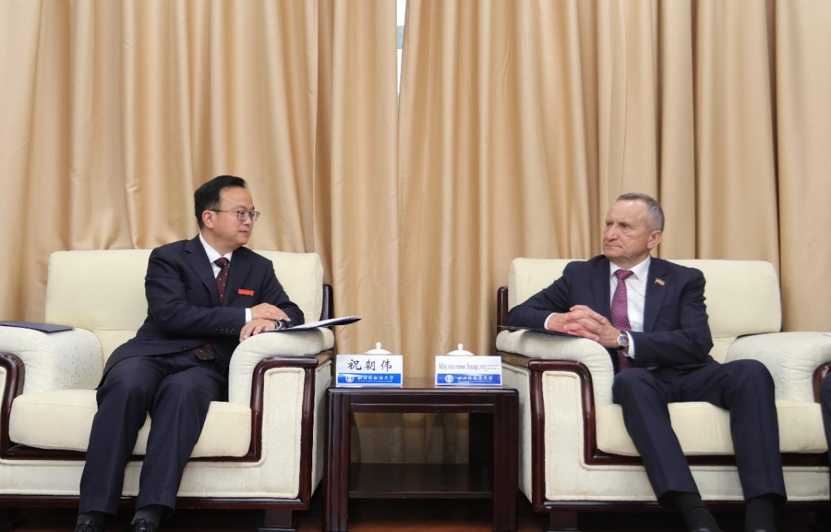 交流中,祝朝伟与阿卜杜拉济亚诺夫·爱德华·尤努索维奇分别介绍了各自学校的办学特色、优势学科及国际交流合作概况。双方高度重视两校的国际化办学及校际合作交流,同意以“中俄教育年”为契机,不断拓展和深化两校合作。