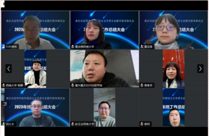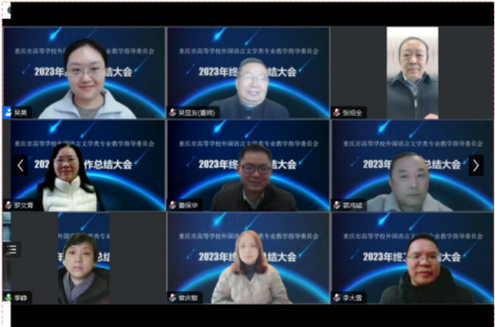 2023年12月26日下午,重庆市高等学校外国语言文学类专业教学指导委员会(以下称“外教指委”)线上召开年终工作总结大会,全体委员出席,会议由外教指委主任、四川外国语大学校长董洪川主持。