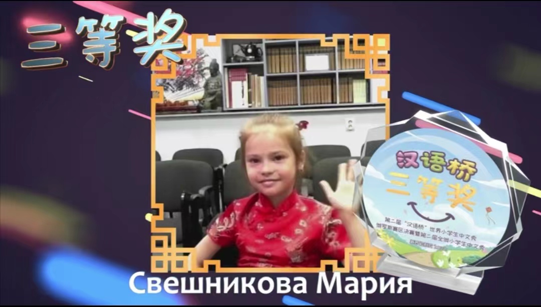 虽然小玛莎年仅7岁,但她表现出色,其汉语口语水平毫不逊色其他选手,尤其才艺表演更是画龙点睛,受到评委们的一致好评,获得了大赛的三等奖。