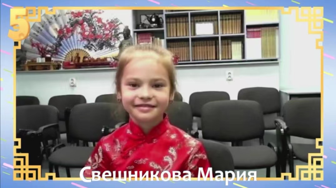 下诺夫哥罗德国立语言大学孔子学院选手玛莎是小学生组年龄最小的选手,在中文秀环节中,她讲述了自己学习汉语的经历以及对汉语和中国文化的热爱,并用标准的中文句子介绍了图片内容。在才艺表演环节,小玛莎一边展示书法才艺,一边生动形象地讲述了“水中捞月”的成语故事。