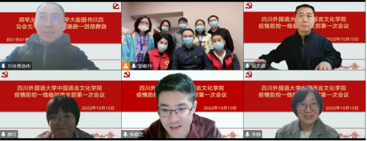 “一名党员就是一面旗帜,一个支部就是一座堡垒”。面对疫情,根据党委部署,中国语言文化学院迅速成立疫情防控一线临时党支部,四川外国语大学党委书记邹渝同志担任临时党支部党支部书记,中国语言文化学院薛红同志、周文德同志担任党支部副书记,邓琼同志担任组织委员,陈茁同志担任宣传委员,罗杰同志担任纪检委员。