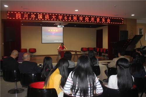 出席音乐会的嘉宾还有四川外国语大学校长李克勇、校党副委书记雷莹、副校长李建平、纪委书记聂志强、副校长乐勇、副校长李小川、组织部部长林克勤、社科部主任兼社会学系主任钟谟智和图书馆党总支书记郭晓春及各院系师生代表。音乐会由四川外国语大学歌乐乐团承办。