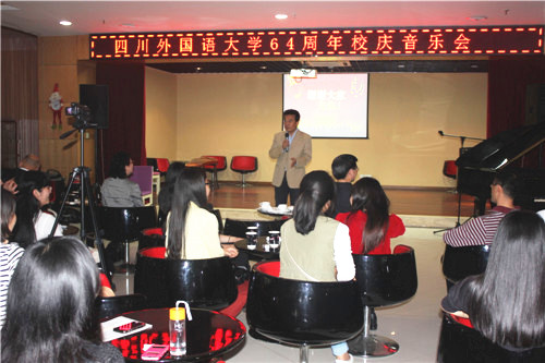 5月9日,四川外国语大学64周年校庆音乐会在歌乐咖啡厅成功举办。校歌乐乐团师生各显身手,以雅致的音乐形式为川外建校64周年献上了美好的祝福。
