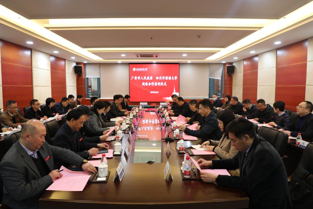 仪式上,双方签署了《广安市人民政府四川外国语大学战略合作协议》。根据协议,双方将在涉外咨询服务、教育合作交流、干部培训合作、人才交流合作四个方面进行校地合作。