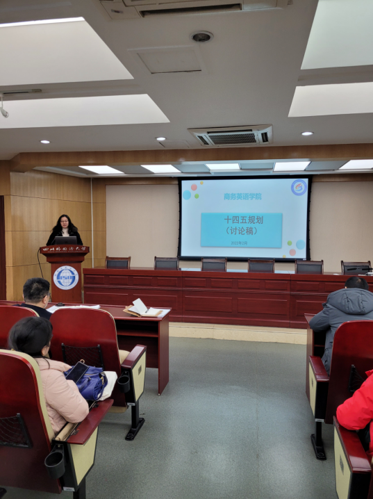 第一阶段分享结束后,院长段玲琍就商务英语学院“十四五”建设规划方案进行详细解读。段玲琍指出,“十三五”期间学院取得了一些成绩,但在师资建设、人才培养、国际化发展等方面依然面临巨大挑战,“十四五”期间,商务英语学院全体教职工将更加齐心协力,在学校“十四五”发展蓝图的指引下,分解任务、主动担当,实现学院更大的发展,为学校新文科和国际化建设贡献商英力量。