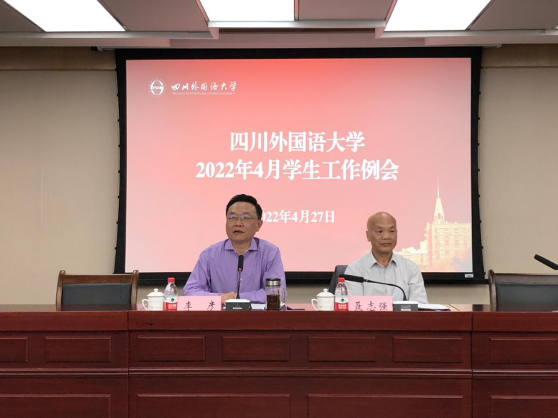 2022年4月27日,我校召开2021-2022学年春季学期4月学生工作例会,学校副校长李彦、校关工委常务副主任聂志强,以及各相关职能部门负责人,各学院党总支书记、副书记,全体辅导员及班主任参加会议。会议由党委学生工作部部长崔光军主持。