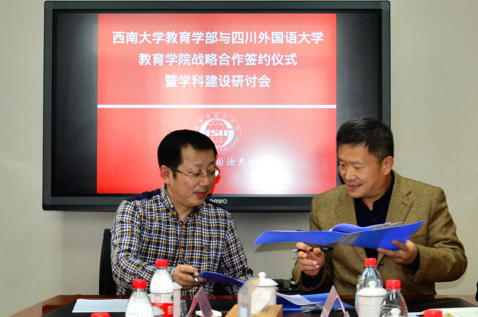 随后,王鲁男与朱德全作为双方代表正式签订了战略合作协议。出席活动的领导、嘉宾及教师们在字母广场合影留念。此次战略合作协议成功签约标志着我校教育学院与西南大学教育学部的合作迈上一个新的台阶,也为我校教育学院的发展开创了新局面。下一步,双方将尽快实现具体项目的对接,推动双方的共同发展。
