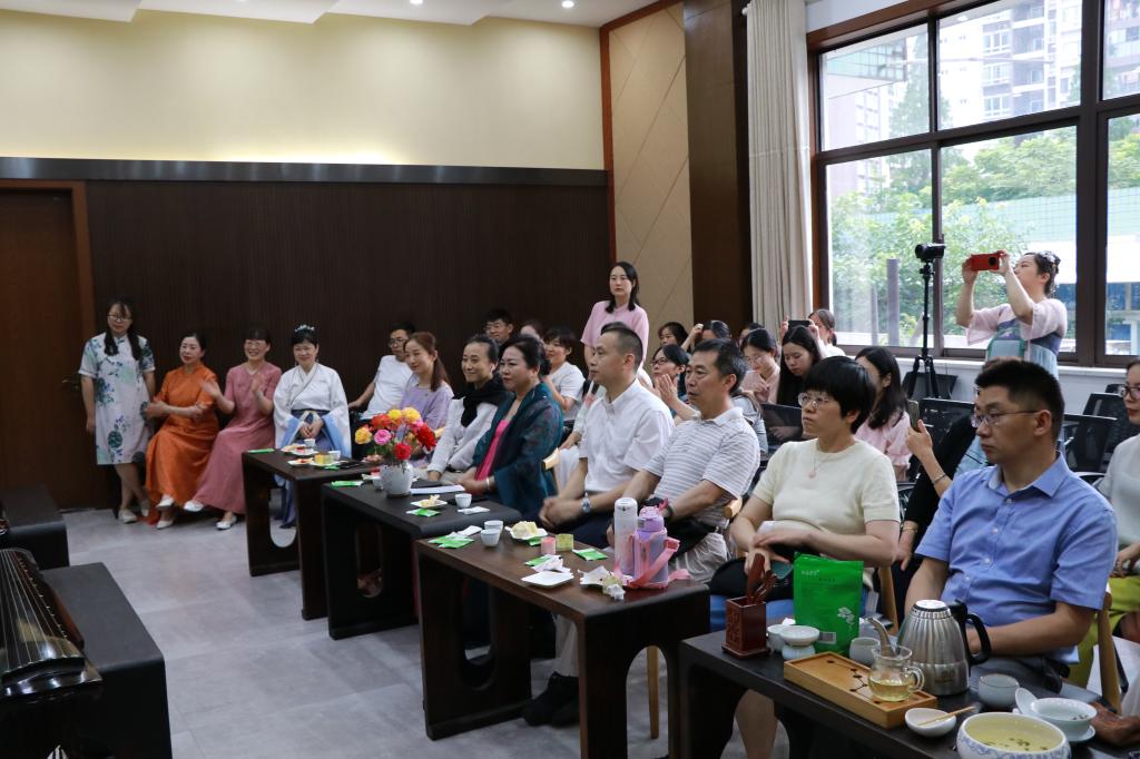 2022年6月17日下午4点,由党委教师工作部(教师发展中心)、校歌乐乐团主办,中国语言文化学院、校工会协办的“壬寅夏至·弦上清风”古琴雅集活动在山下传统文化中心顺利开展。四川外国语大学副校长郑白玲,党委教师工作部(教师发展中心)部长胡登全,校工会主席张露丹、副主席周正容,中国语言文化学院院长周文德、书记薛红,档案馆馆长张琴,离退休处副处长周福兰,教育规划与评估院副院长胡文飞,校歌乐乐团常务副团长刘星,以及两位校友嘉宾和我校50余名师生参加了本次活动。