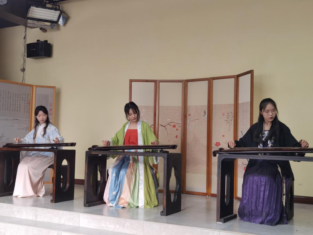 活动在弦歌《寒夜》的弹奏中拉开帷幕。本次古琴雅集活动分为上下两场,共24个节目,既有《良宵引》《关山月》等古琴名曲,有《虞美人》《卧龙吟》等抒情悠扬的曲目,也有表达深远禅境思想的《寒山僧踪》和倾诉相思之情的《阳关三叠》《长相思》等琴曲;此次古琴弹奏曲目或高扬、或婉转,或低沉、或欢快,或悲闷、或豁达,将琴曲所描绘的意境表达得淋漓尽致,充分体现了我国传统文化的博大精深,引得在场观众连连赞叹。