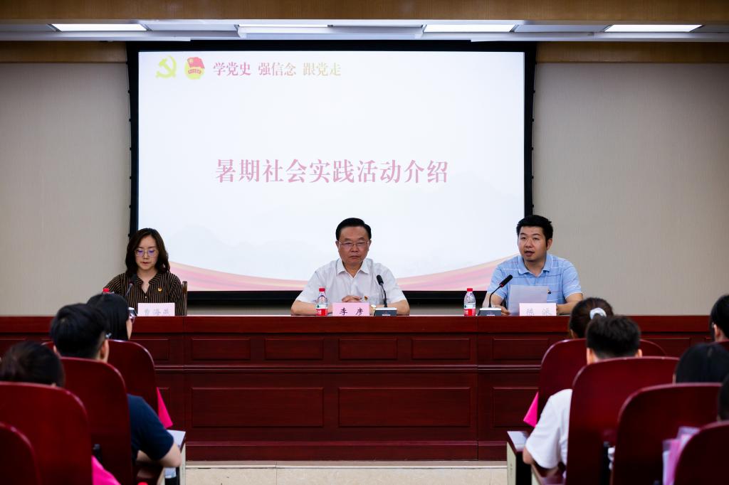 首先,校团委副书记陈派介绍了我校2021年暑期社会实践活动的基本情况。19支“三下乡”校级重点团队将分赴秀山、九龙坡、南岸等地开展社会实践活动;我校多语言青年志愿服务队成功入选由中央文明办三局、团中央青年志愿者行动指导中心、中国青年志愿者协会秘书处联合开展的2021年“圆梦工程”助力乡村学校少年宫“七彩假期”志愿服务团队,将赴重庆市东港学校开展志愿服务;结合新文科建设,将开办“挑战杯”训练营,集结学生团队、打造示范项目、冲刺国家竞赛;70名多语言青年志愿者将参与2021智博会志愿服务。