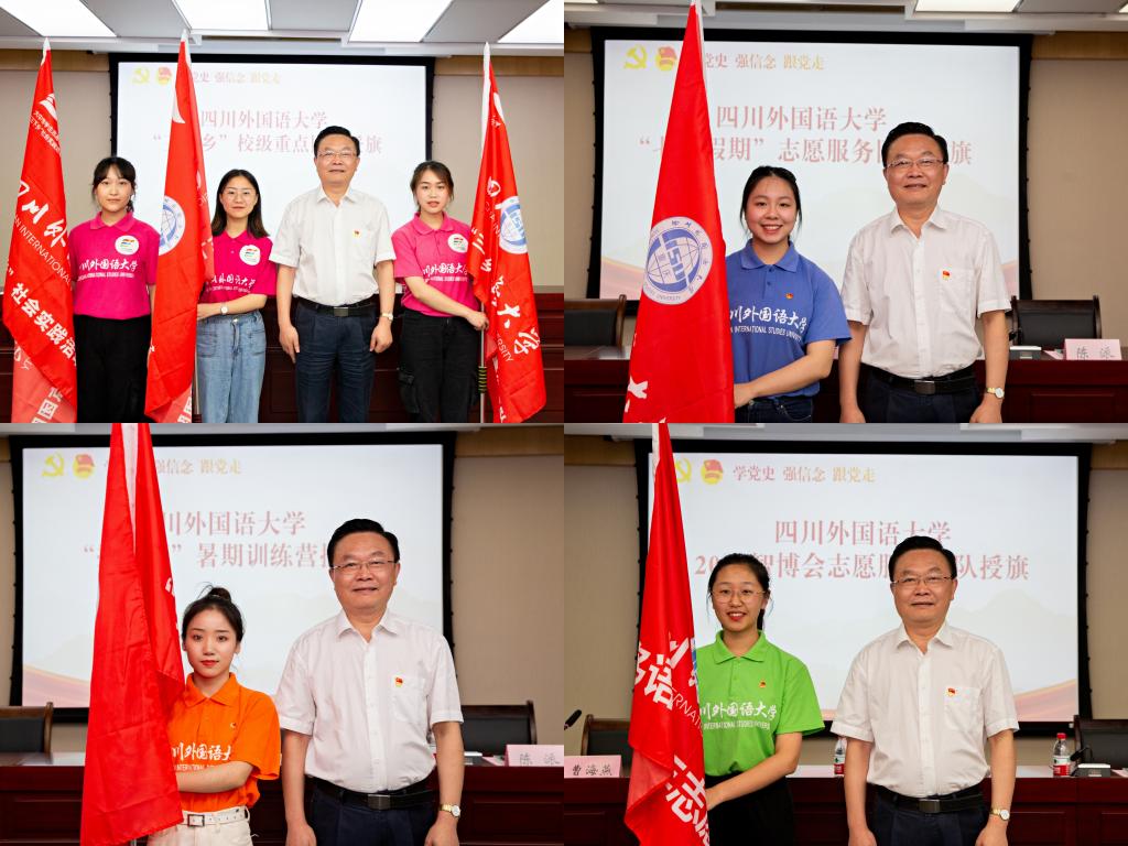 7月14日,四川外国语大学2021年暑期社会实践活动出征仪式在西区立德楼A609举行。党委常委、副校长李彦,校团委全体干部、学院团总支书记、暑期社会实践团队指导老师和学生代表参加本次出征仪式。