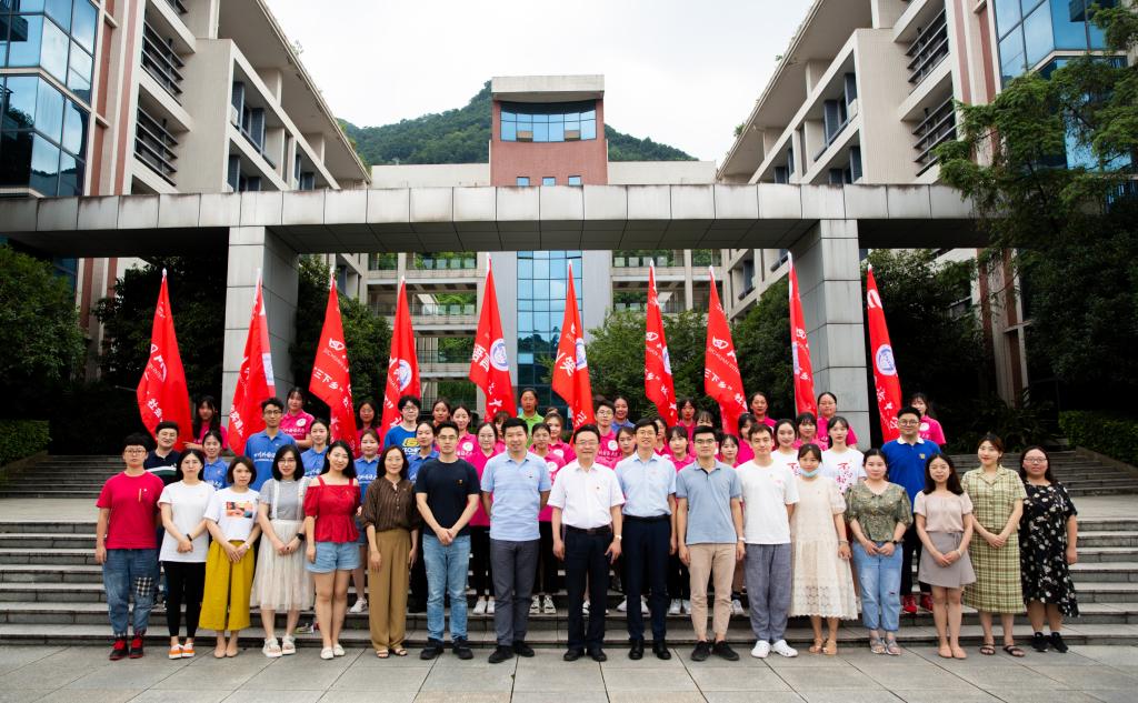 李彦副校长向2021暑期社会实践团队代表授旗,标志着我校2021年暑期社会实践活动正式启动。