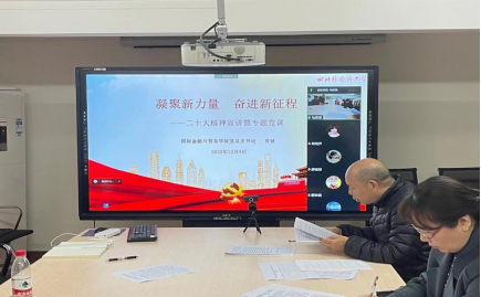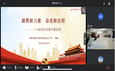 为深入学习宣传贯彻党的二十大精神,切实把广大师生党员的思想和行动统一到大会精神上来,12月9日,国际金融与贸易学院党总支书记曾健以《凝聚新力量奋进新征程》为题宣讲了二十大精神专题党课。党课以线上线下方式同步进行,学院全体师生党员70余人参加了本次党课学习。
