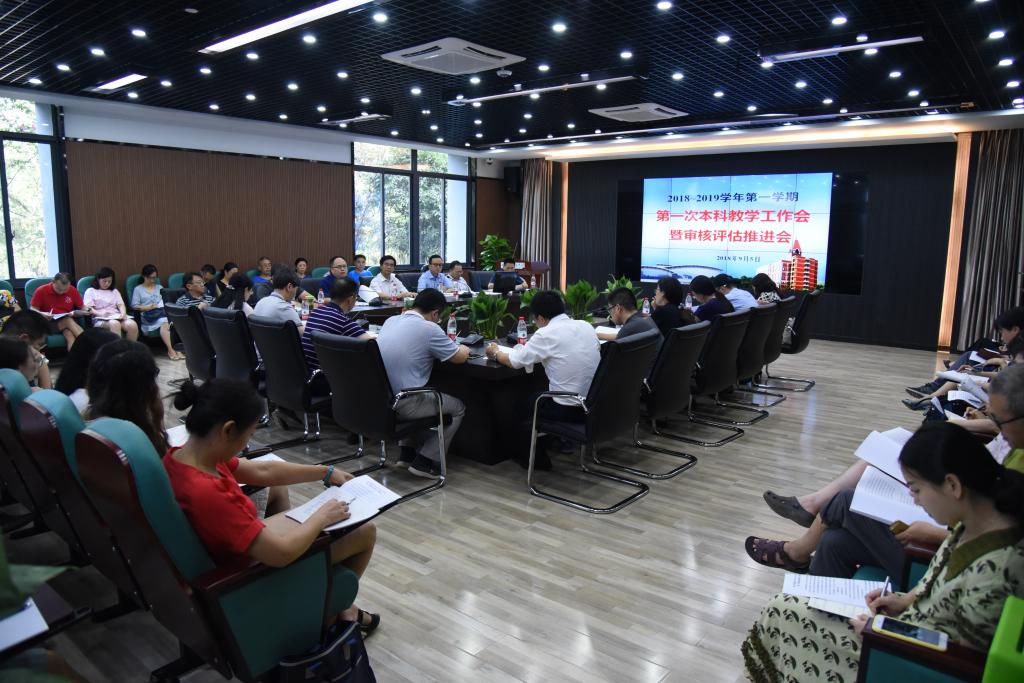 教务处处长严功军安排部署本学期主要教学工作。他首先提出,本学期教学工作以迎接“本科教学审核评估”为中心,在保证日常教学活动正常开展的基础上,应着力做好以下方面重点工作:做好审核评估预评估和正式评估的相关工作;深入学习贯彻“全国本科教育工作会”精神,以本为本,开展教育思想讨论,加强宣传学习,制定学校的具体工作方案;进一步深化教育教学改革;推进专业建设,包括新专业建设、一流专业建设、“三特”项目建设等;推进在线开放课程建设、双语/全英课程建设;加强《普通高等学校本科专业类教学质量国家标准》学习,启动2019版本科专业人才培养方案修订与论证;加强教师责任心教育和目标考核约束;完善硬件设施规划,加强专业实验室的建设与使用,更好地为本科生、研究生教学服务。