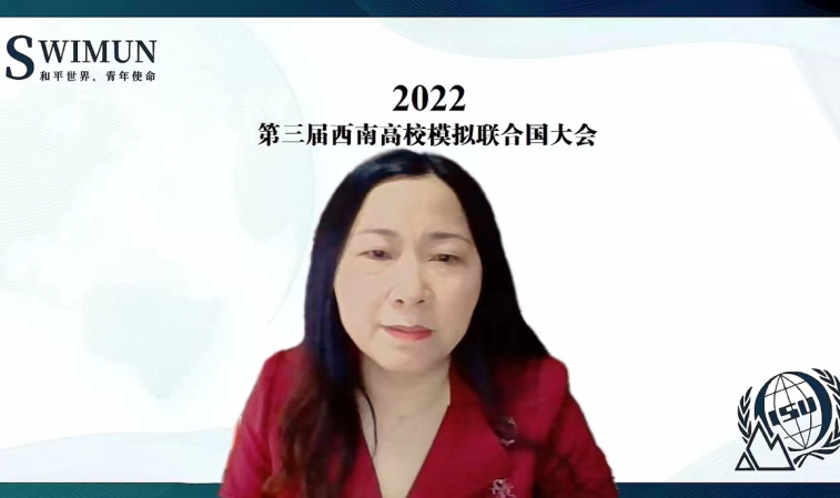 6月5日,为期三天的2022年第三届西南高校模拟联合国大会顺利落下帷幕。四川外国语大学教务处处长刘玉梅受邀出席闭幕式,并做英文主旨致辞。她指出和平与发展是当今时代的主题,推动落实2030年可持续发展议程已经成为各国的普遍共识,面对复杂的国际形势,要实现可持续发展,需要各国相互理解、相互信任、相互合作。四川外国语大学一直以来致力于为学生提供多样化的专业实践机会,让学生感受多元文化、了解国际组织制度与运行规则,培养学生的全球视野。刘玉梅肯定了模拟联合国活动对学生综合能力提升的价值,认为它为广大青年学子提供了一个有助于推动真正变革的新思维平台,激发了模联代表为全球治理贡献新智慧、为推动构建人类命运共同体贡献青春力量。