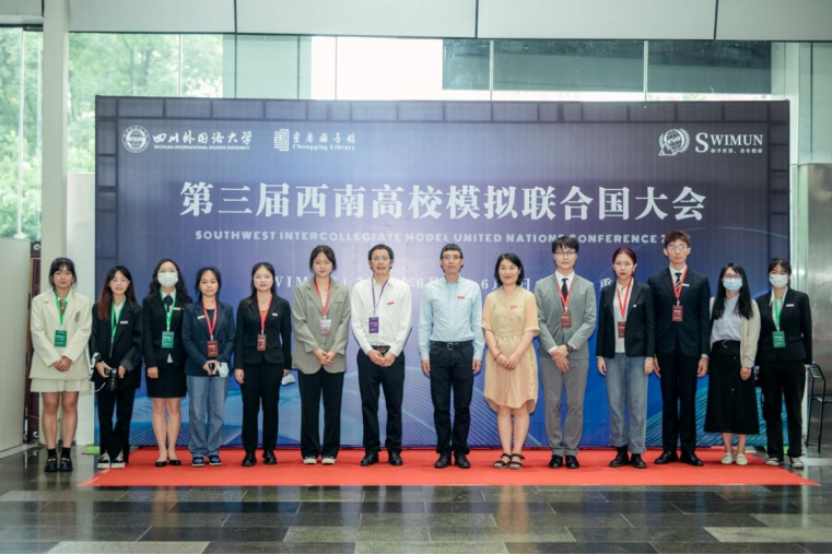 四川外国语大学国际关系学院领导与2022年第三届西南高校模拟联合国大会组委会合影