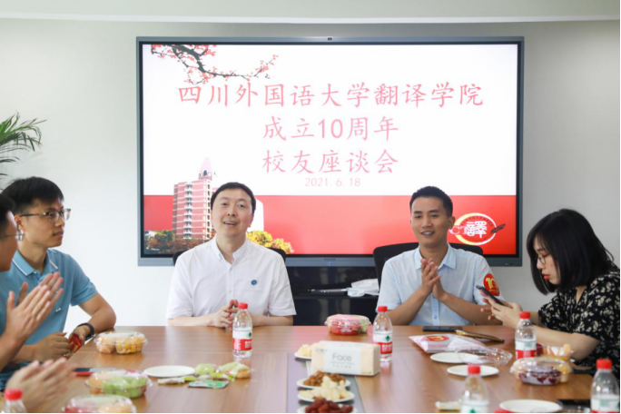 十载结春华秋实,十载育四海英才,翻译学院自2011年6月18日成立以来,十年砥砺前行,为各行各业培养输送了大量优秀毕业生。值此院庆,校友们从四面八方汇聚歌乐山下,追忆往昔,互道真情,共庆学院十岁生日。2021年6月18下午14:00,翻译学院院庆10周年系列活动之“校友座谈会”在四川外国语大学当代国际话语体系研究院举行。活动由翻译学院党总支书记郭健主持,党总支副书记张丽、国际话语体系研究院研究员王洪波博士、研究生辅导员张信、本科生辅导员姚沁以及来自各行各业的十多名校友参与了本次座谈会。