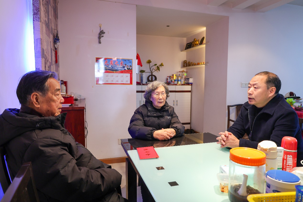 每到一位老同志家中,校领导都与他们促膝长谈、亲切交流,详细询问老同志的身体状况、饮食起居和家庭生活情况,耐心倾听他们的心声与需求。慰问中,校领导对老同志们长期以来为学校建设发展作出的贡献表示衷心感谢,向老同志们介绍了过去一年学校在政治建设、学科专业、人才培养、学术科研、社会服务、校园治理等方面取得的新成效、彰显的新作为、展现的新气象,特别是学校真诚倾听、积极满足老同志诉求,出台政策支持老同志力所能及做科研、加强思想政治引领等方面的创新举措,认真听取了老同志们对学校推动“十五五”高质量发展的意见和建议。校领导对老同志们提出的建议逐一积极回应,要求有关部门做好记录、梳理落实,确保老同志们的意见落到实处。