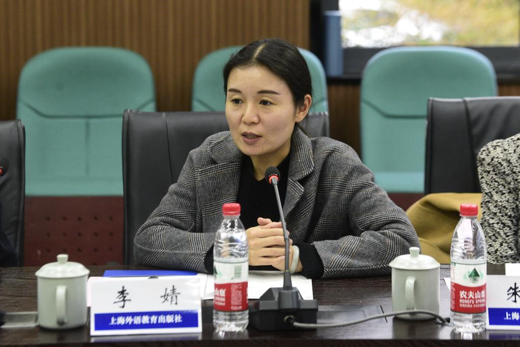 外教社多语种营销部主任李婧及工作人员朱子旋分别对外教社多语种营销部、各语种教材架构体系作了介绍和讲解。李婧表示,未来将与学校合力推动小语种专业教材的引进与建设,更好地服务我校一流本科教材建设和一流专业建设。