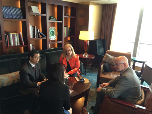 校庆招待会晚宴前,李克勇先后会见了纽卡斯尔大学国际事务副校长mrs. winnie eley女士、校长carolinemcmillen女士,副校长richard dunford先生,双方回顾了过去两校已经开展的包括中外合作办学商务英语双学位项目在内的各项合作,同时初步探讨了下一步双方拟合作的方面:加强互访、师资交流与培训、硕士研究生培养、新闻传媒、英语语言文学等。