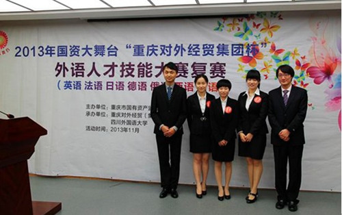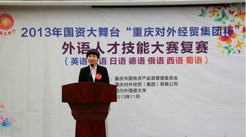 11月7日晚,由重庆市国有资产监督管理委员会主办,以“中国梦,国企人,青年魂”为主题的2013年国资大舞台“重庆对外经贸集团杯”外语人才技能大赛复赛(日语高校组)在我校拉开帷幕。日语高校组共有来自重庆大学、西南大学、重庆师范大学、四川外国语大学南方翻译学院等22名选手参赛。