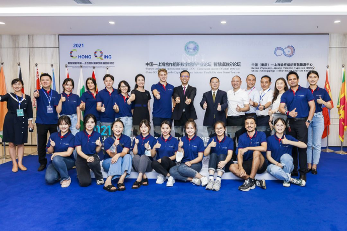 俄语学院始终重视发挥志愿服务的育人功能,在为国家主场外交和重庆外事活动提供助力的同时,鼓励学生积极践行中外人文交流。此次,俄语学院共为上合数字经济论坛和2021智博会选派了2组志愿者,共17名本科生和研究生参加志愿服务工作。第一组志愿者由7名同学组成,其通过选拔分别在中国—上海合作组织数字经济产业论坛的外宾接待组、会务组及宣传组进行志愿者服务,为论坛嘉宾提供陪同翻译,为论坛会务及宣传工作提供俄语语言支持。第二组志愿者由10名同学组成,该组同学出色地完成了中国—上海合作组织数字经济产业论坛智慧旅游分论坛的志愿者服务工作,其积极同上合组织成员国展厅的外籍志愿者合作,为参观者讲解各国的文化、旅游、饮食信息,同时还为论坛中外来宾介绍上合组织的发展历程和重庆的人文特色。俄语学院的志愿者们以出色的专业能力、负责的工作态度赢得了各国嘉宾、参观者与工作人员的一致好评。