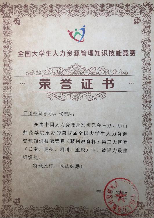 2019年5月25日,在国际商学院人力资源管理专业裴琳老师和蔡薇老师的带领下,我院人力资源管理专业学生薛胜平、邹林、宋金洪、梁雯四人组成的“智之队”参加了第四届全国大学生人力资源管理知识技能竞赛第三大区赛(云南、贵州、重庆、四川)的比赛。