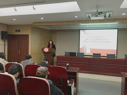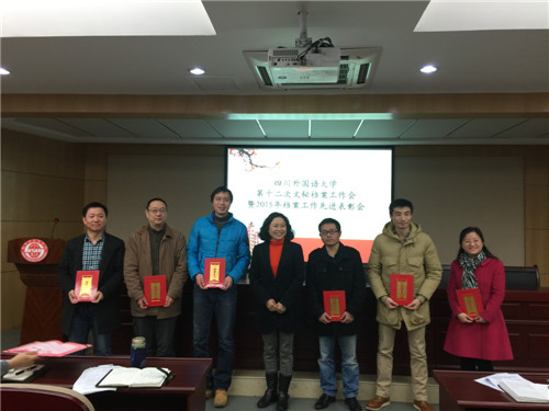常慧明副主任宣读了《四川外国语大学关于表彰2015年档案工作先进单位和个人的决定》,郑白玲副校长为获得先进荣誉的单位和个人颁奖。