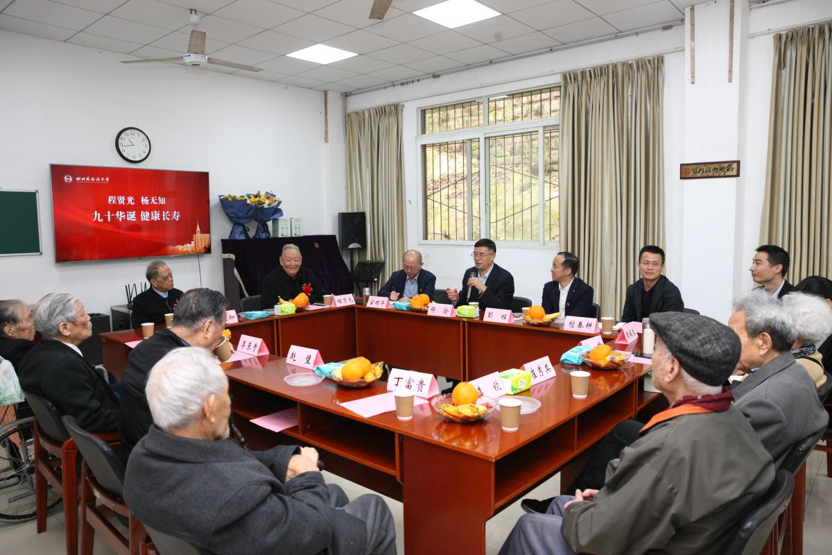 4月11日,学校召开离休干部九十华诞祝寿活动,党委书记邹渝为今年满九十岁的寿星程贤光、杨无知祝寿。离休干部崔振武、李来贵、赵璧、李钦、崔秀其、丁福贵、余瑜参加,党委常委、组织部部长彭程、人事处处长檀春耕、组织部副部长宋雷,离退休工作处全体同志参加会议。离退休党总支书记、离退休工作处处长官晴华主持会议。