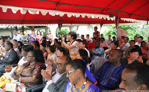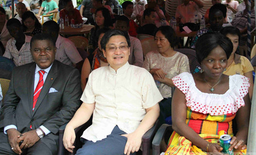 活动中,刘豫锡大使和阿博主席分别发表热情洋溢的讲话,向全体旅多华人华侨表示节日问候。随后,洛美大学孔子学院学生为大家献上了精彩的演出。学生们演唱了《听妈妈的话》、《我和你》《爱你不是两三天》、《但愿人长久》、《送别》和《明天会更好》等中文歌曲。他们优雅的台风、标准的发音和激情的演唱搏得大家阵阵掌声与热烈喝彩。当学生们唱起《明天会更好》这首大家耳熟能详的中国歌曲时,引起了在座华人华侨的共鸣,台上台下齐欢唱,把元宵庆祝活动推向了新的高潮。庆祝活动丰富多彩,高潮迭起,洛美民间鼓舞艺术团表演的传统鼓舞为元宵佳节增添了多元文化与艺术风采,到场嘉宾还在欢乐的气氛中一起品尝了中国美食。