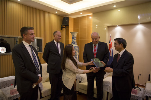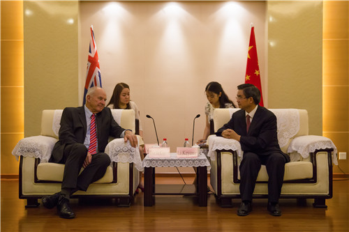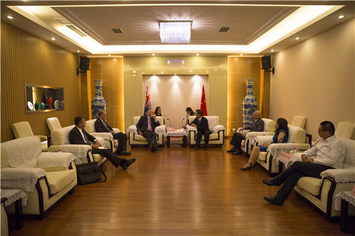 9月13日下午,新西兰-中国关系促进委员会主席唐纳德·麦金农爵士(SirDon McKinnon)、新西兰驻华大使麦康年先生(John McKinnon)、新西兰驻成都总领事孔思达先生(Alistair Crozier)一行访问我校。市外侨办领事处副处长肖畅、美大处李岚、新西兰驻成都总领事馆政策顾问张娜女士陪同访问。