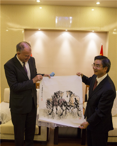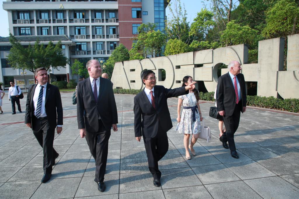 李克勇校长在宏文楼接待室与来宾会晤。李克勇校长对唐纳德爵士一行的到来表示欢迎,并介绍了我校的历史沿革与发展现状。随后,唐纳德主席对我校的接待表示感谢,简要介绍了新西兰-中国关系促进委员会的情况以及汉语在新西兰的重要地位,表达了对新西兰的青少年能够有机会来中国、来川外交流学习的愿望。我校李小川副校长、国际合作与交流处副处长张幼斌一同出席。
