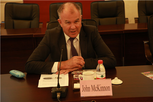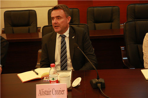 会谈结束后,唐纳德主席一行在李小川副校长的陪同下前往西区图书馆会议室,与我校国际关系学院、翻译学院、英语学院、商务英语学院和国际教育学院的教师代表及学生志愿者简短交流。唐纳德主席表示近年来中国与新西兰两国在教育、贸易和旅游等方面合作良好。新西兰正在兴起汉语热,学习汉语、热爱汉文化的新西兰学生越来越多,孔子学院的开办为他们提供了更便捷的汉语学习途径。同时,他希望能有更多的中国学生赴新西兰留学。此后,与会代表就两国移民政策、乳业市场前景、旅游业发展、汉文化的西方传播以及互派留学生等问题进行互动交流。