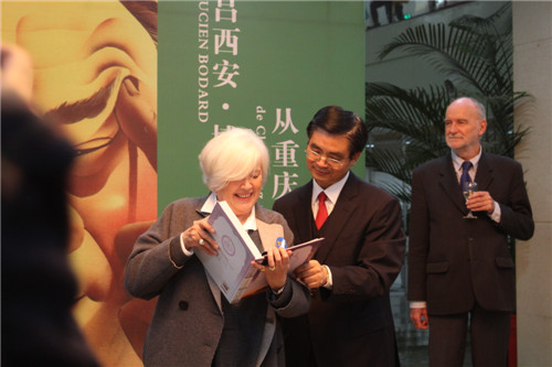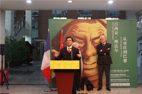 图书馆参加“吕西安生平展”开幕式及酒会。李克勇校长和法国驻成都总领事魏雅树先生主持开幕式并致感谢辞。李校长邀请此次展会主人公吕西安•博达尔先生的夫人发言