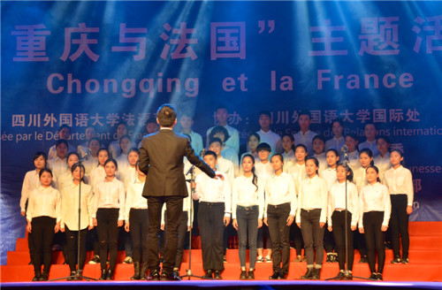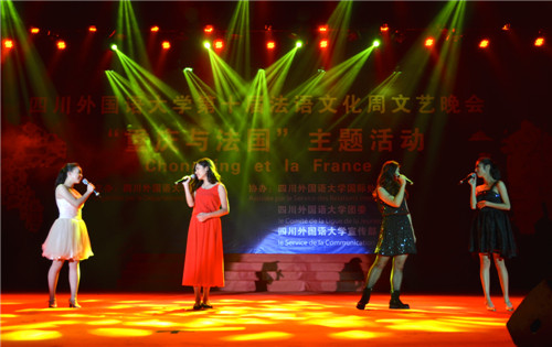 接下来,法语系的同学们演唱了《若你不在》、《月亮为你闪耀》等经典法语歌曲大合唱