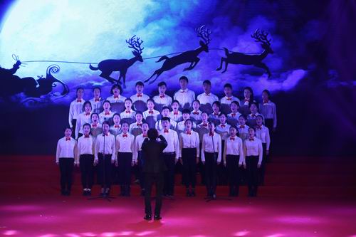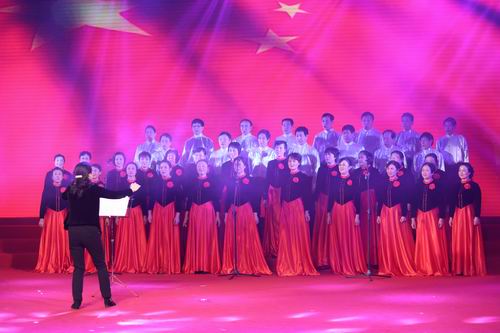 教职工合唱团带来合唱《迎风飘扬的旗》和《用力拉》,气势恢宏。