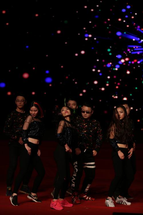 商务英语学院教师甘姝姝与呙明君等带来的街舞《hey freaks》激情四射,将现场气氛推向新的高潮。