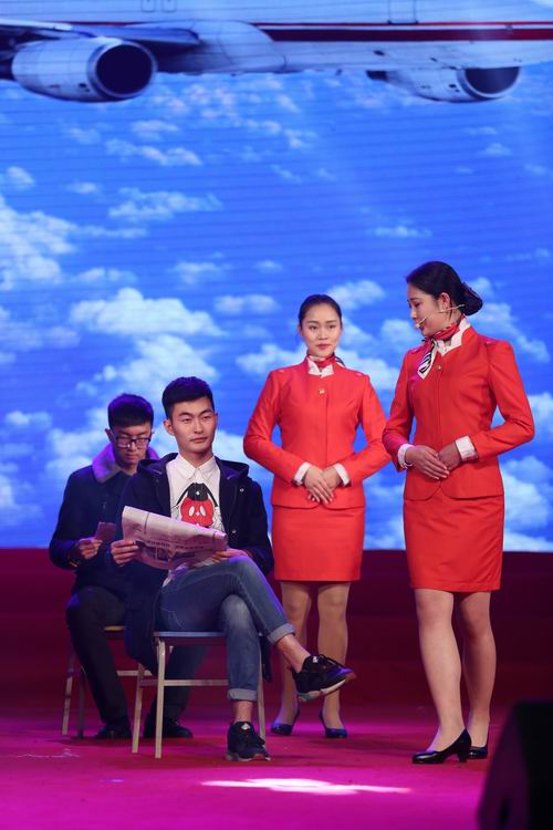 颜值高、气质好的航空制服秀《冲上云霄》,掀起现场阵阵欢呼浪潮。