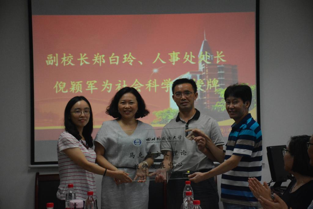 9 月13日 上午,四川外国语大学社会科学部、社会学系教师发展中心挂牌仪式在行政楼B503隆重举行。我校副校长郑白玲,人事处处长倪颖军、副处长彭程以及社会科学部,社会学系领导班子成员和教师代表出席了仪式。仪式由社会学系党总支副书记薛红主持。