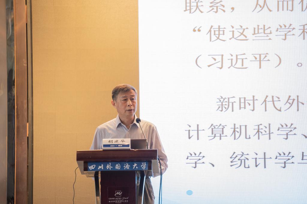 中国社会科学院语言研究所胡建华研究员的发言题目为“新文科建设与外语教育和语言学转向:走向新描写主义”。胡教授提出,新文科建设要重视外国语文能力的培养,并提出从熟读、细读原著开始培养外国语文能力。他强调,在语言学研究中要提倡一种新描写主义精神,并指出新描写主义追求对语言事实或现象的细颗粒度的微观描写和刻画。