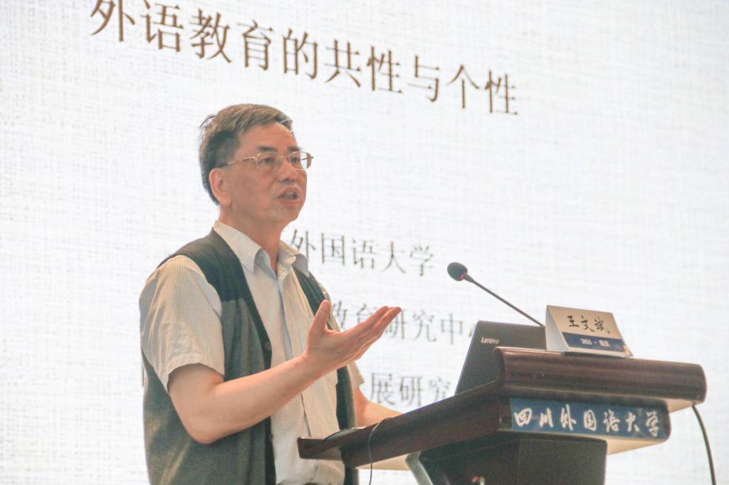 北京外国语大学王文斌教授做了题为“外语教育的共性与个性”的报告。王教授提出,外语教育是语言教育的重要组成部分,要高度关切外语教育的共性和个性问题。他指出,要创生真正切合我国国情、教情、学情的外语教育教学理论架构和实践方案,构建我国外语教育教学发展新格局,办出“中国的外语教育”,而不是外语教育“在中国”。