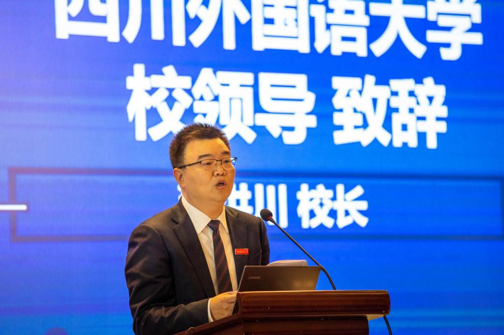 四川外国语大学校长、中国英汉语比较研究会副会长董洪川教授为大会致辞,并介绍了四川外国语大学的办学特色和办学成就。