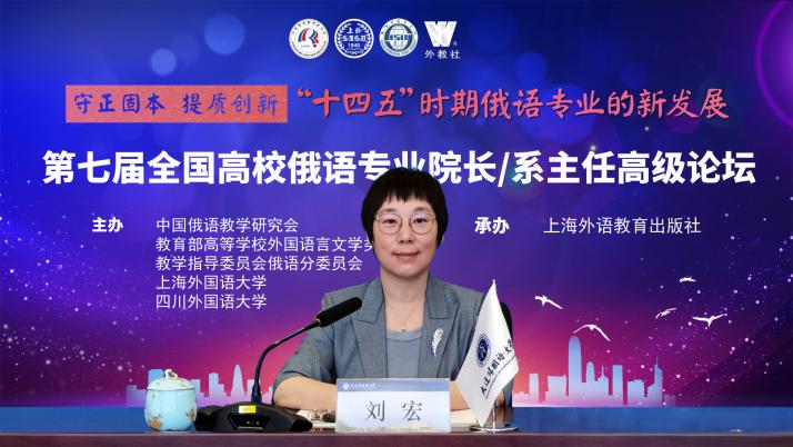刘宏作题为《“十四五”时期俄语专业新发展》的主旨报告。报告围绕“十四五”这一重要历史节点,重点讲解了高等教育、外语教育、俄语专业面临的机遇和挑战,以及俄语专业建设中的四个“一流”五个话题。她表示,新的历史时期对俄语专业的发展也提出了新的要求,为适应这一变化,俄语专业既要贯彻落实《俄语专业指南》,又要做好俄语“四新”文科建设,从而顺应新时代,明确新要求,迈出俄语专业新步伐。