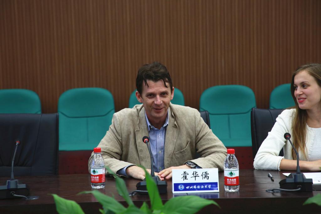 李小川首先感谢匈牙利总领事馆对我校匈牙利语专业的关心与支持,希望双方继续加强合作。霍华儒感谢川外对匈牙利驻重庆总领事馆工作的支持和帮助,表示和一如既往地支持川外及匈牙利语专业建设。随后双方就我校匈牙利专业建设和学生赴匈牙利留学等事宜深入交换了意见。最后,双方合影留念,并互相赠送了礼物。
