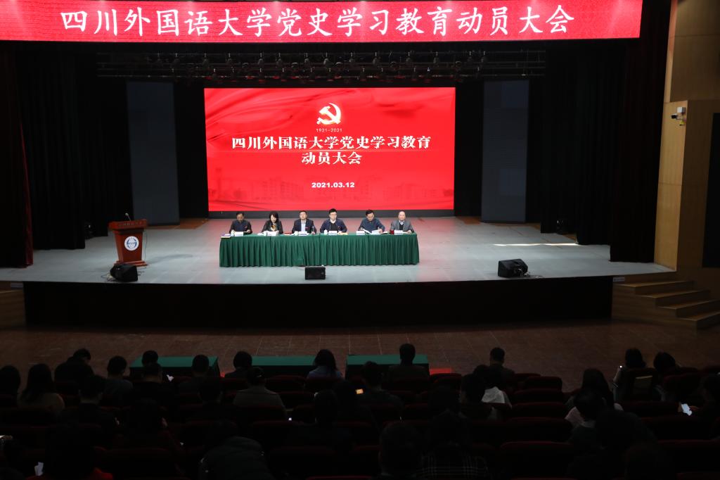3月12日,四川外国语大学召开党史学习教育动员大会,深入学习贯彻习近平总书记在党史学习教育动员大会上的重要讲话精神,按照中央《关于在全党开展党史学习教育的通知》要求和重庆市委、市委教育工委党史学习教育动员大会部署要求,紧密结合学校改革发展实际,对学校开展党史学习教育进行动员部署。党委书记邹渝作党史学习教育动员讲话,党委副书记苟朝莉主持会议。全体校领导,全体中层领导干部,二级党组织书记、专职副书记、基层党支部书记,全体组织员、科级干部参加会议。