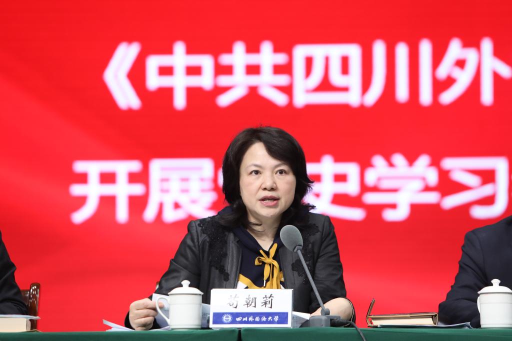 会议中,苟朝莉介绍了《中共四川外国语大学委员会开展党史学习教育实施方案》,就党史学习教育的目标要求、学习内容、总体内容、工作任务、加强组织领导进行了说明。